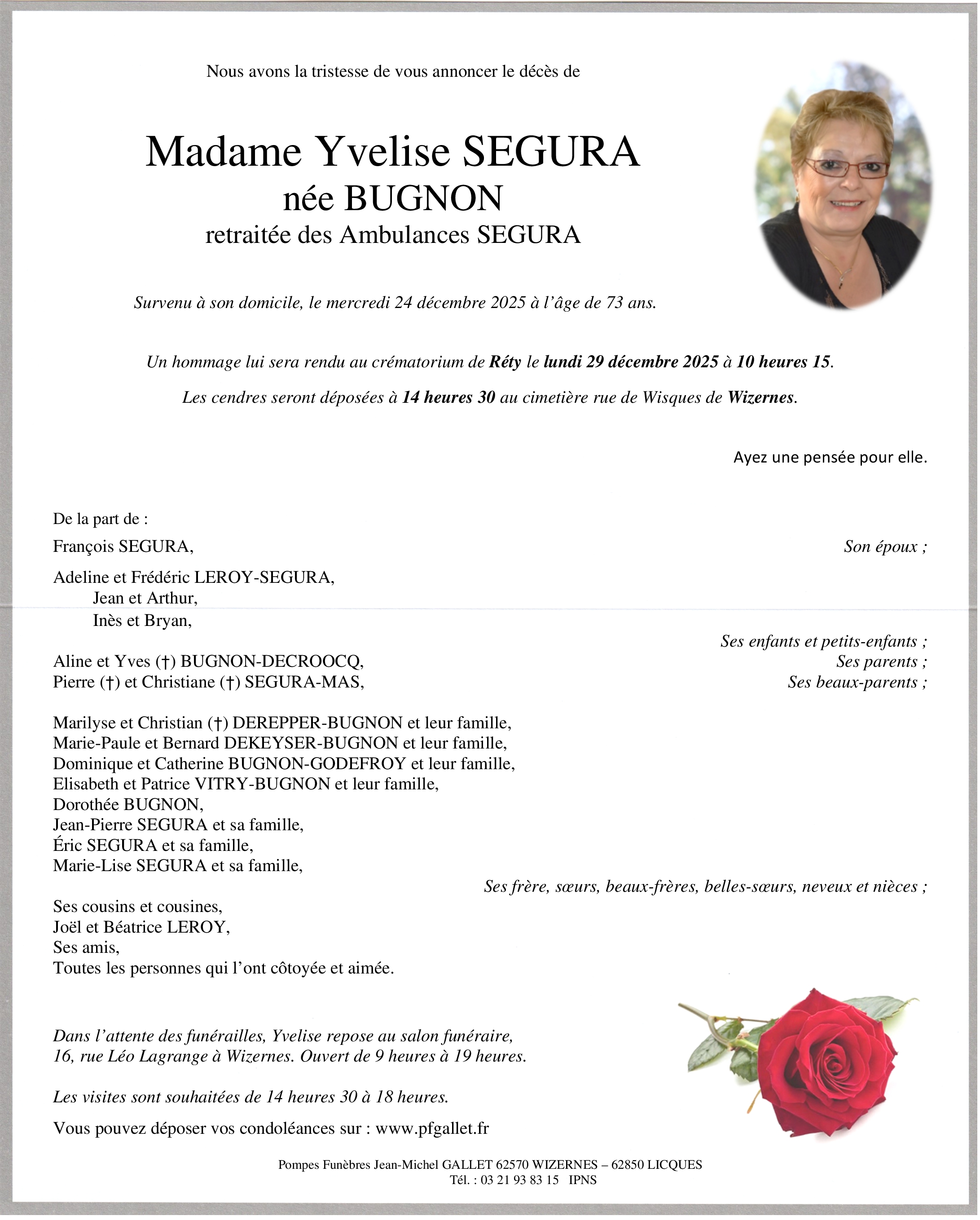Avis de décès de Madame Yvelise SEGURA